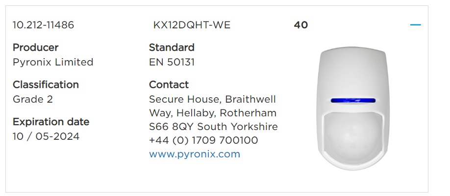 EN50131-2-2:2008, EN50131-5-3:2005+A1:2008