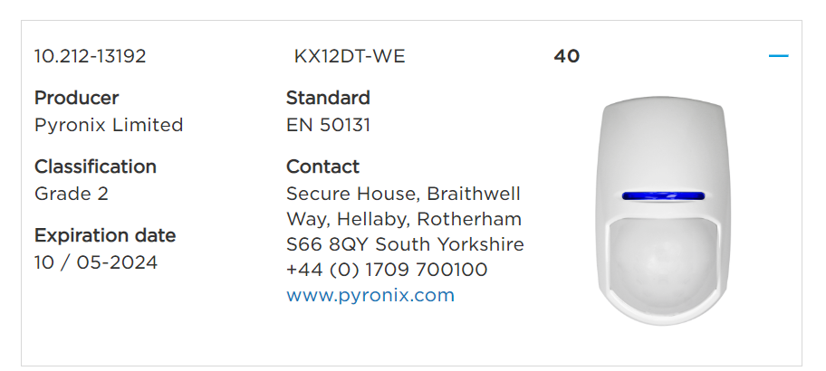 EN50131-2-4:2008, EN50131-5-3:2005+A1:2008, PD6662:2017