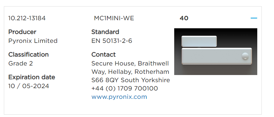 EN50131-2-6:2008 | EN50131-5-3:2005+A1:2008 | PD6662:2017 |